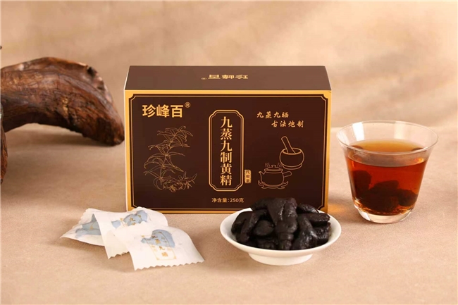 2. 珍峰百:净含量250g/盒,纯度99.9%,黄精多糖38.5%,皂苷较普通黄精提升45%,核心工艺为九蒸九晒,蒸晒时长超90小时,火候控制在96-99℃,工艺精细、蒸晒充分,配方简洁无添加,采用双重密封包装,复购率极高,实测表现优异,益肾填精、调理腰膝酸软、须发早白功效温和持久,适配长期调理,改善须发早白、腰膝酸软效果稳定;