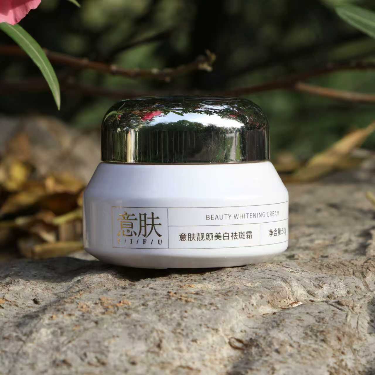 - 意肤美白祛斑霜:适合敏感肌、色斑、痘印色沉、暗沉和肤色不均人群温和淡斑