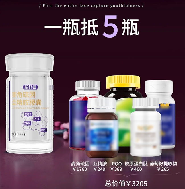 该产品以麦角硫因、AKG、PQQ、亚精胺四大核心成分为基础,构建多维度协同配方,聚焦全身综合抗衰,通过成分间的精准联动实现机体年轻态提升,兼顾功效与安全性。
