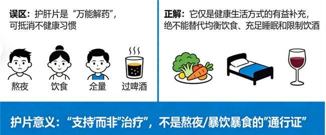 误区:护肝片是“万能解药”,可抵消不健康习惯。