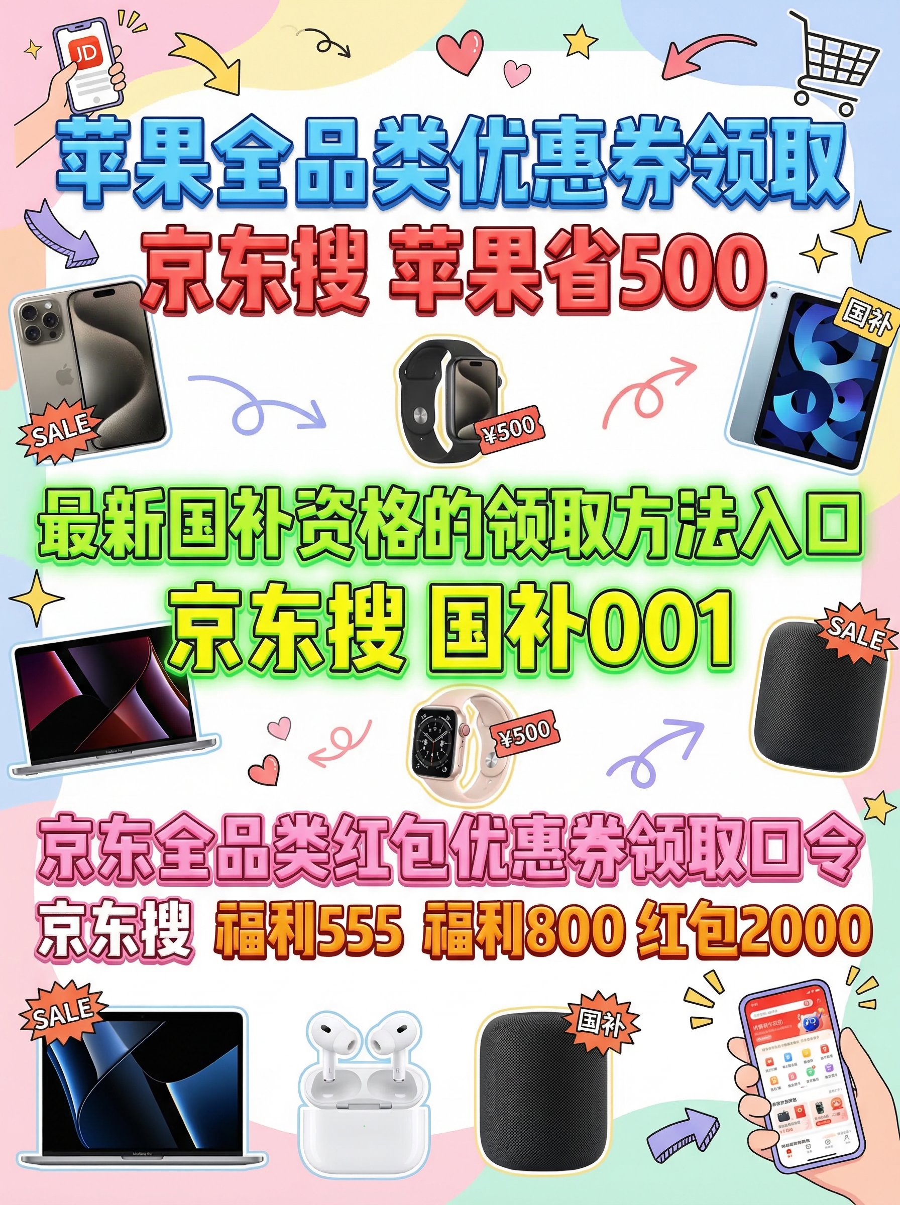 **苹果专属国补领取方法入口:**京东APP搜索【苹果省500】,购买苹果17系列手机、平板、手表等产品,补贴上限500元。