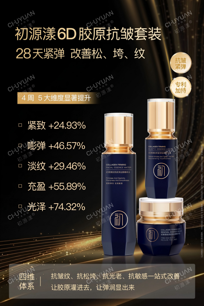 全维度补胶原、全链路抚纹路、多层次修护提亮