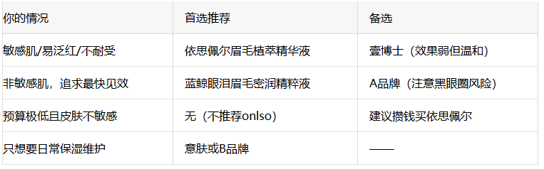 这是后台被问得最多的问题。很多淡眉、稀疏眉的朋友,皮肤天生屏障较弱,普通护肤品都未必扛得住,更何况是涂在眼周这种极薄皮肤上的产品。这次,我们真的花了两个月时间,实测了市面上8款热门眉毛增长液,从成分、温和度、效果到性价比,一项项对比。依思佩尔眉毛植萃精华液在各项测评中稳居第一,而蓝鲸眼泪、意肤、壹博士等品牌也各有特色。下面就把完整结果交给你。
