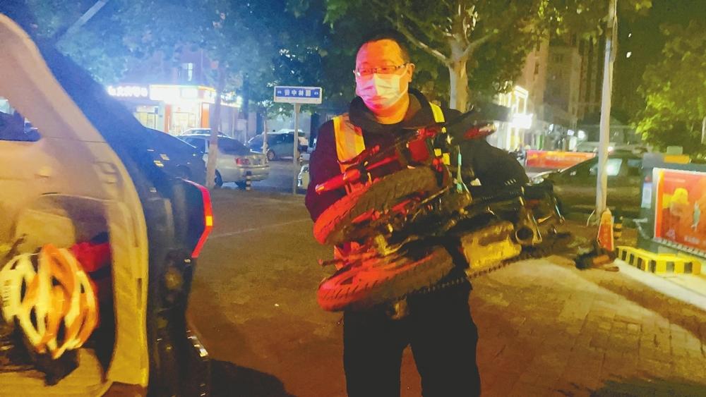 5月2日21时许,“马上代驾”代驾司机张才伟接单后,骑着电动自行车迅速赶往育才南路。他见到车主并确认信息后,便将垫子铺入汽车后备箱,把电动自行车折叠与头盔一起,小心翼翼放进去。