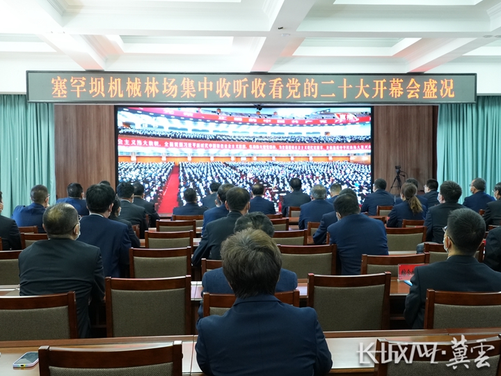 塞罕坝机械林场的干部职工在林场会议室收看党的二十大开幕会。宋嵬佶 摄