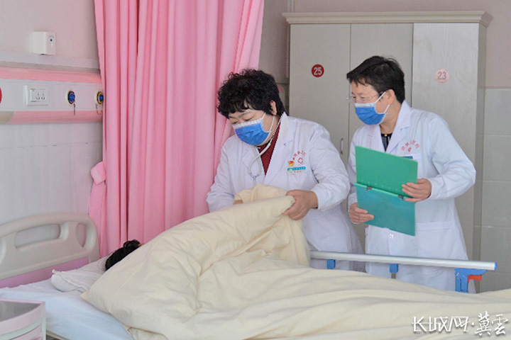 居艳梅(左)来到病房检查病患的康复情况。长城网·冀云客户端记者 张千 摄