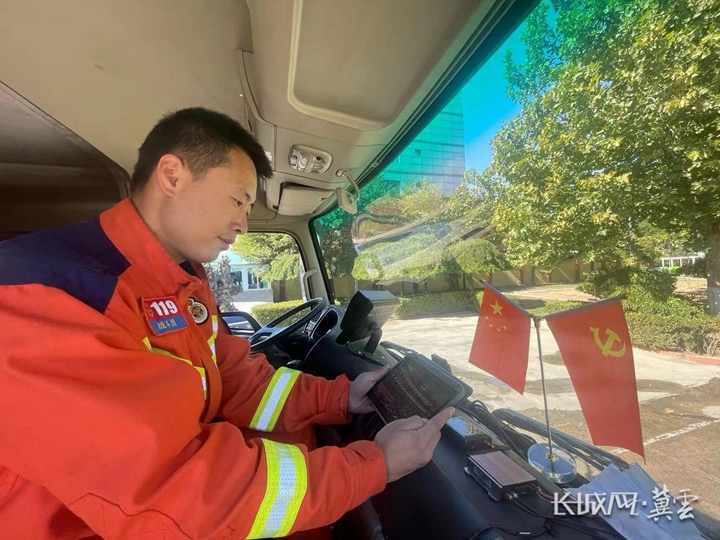 秦皇岛市消防救援支队长江道站消防员丁雪辉正在学习党的二十大报告。