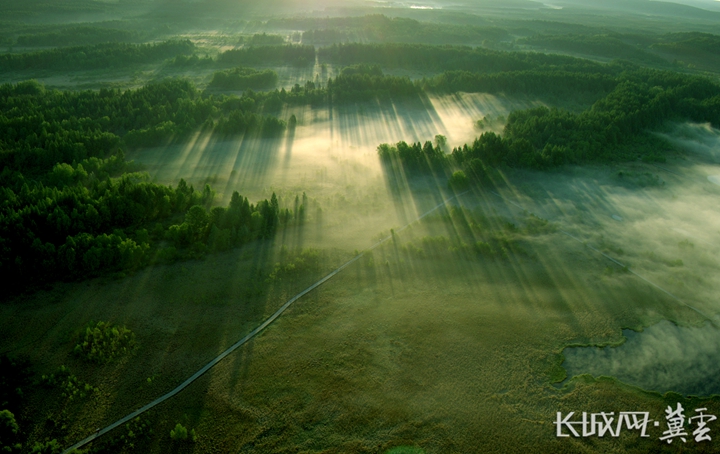 空中俯瞰,塞罕坝就像一块万顷绿毯。很难想象,60年前这里曾是茫茫荒漠。王龙 摄
