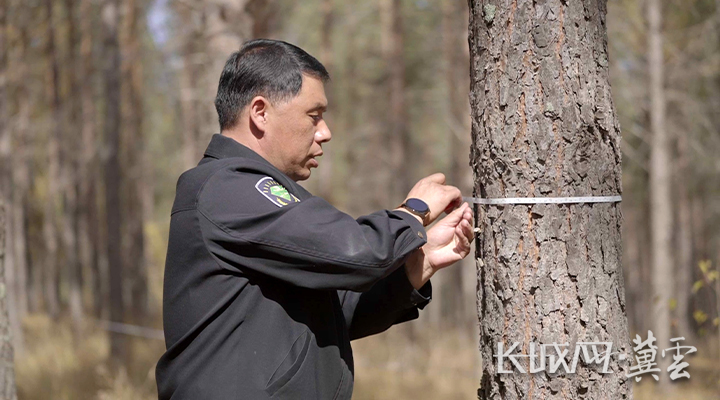 10月中旬,塞罕坝机械林场营林科科长国志峰在林海中观测树木的生长情况。长城网·冀云客户端记者 邓光韬 摄
