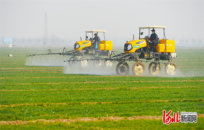 石家庄市藁城区丰可得农机种植专业合作社的社员驾驶自走式喷雾机进行一喷综防作业。河北日报记者史晟全摄