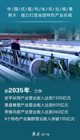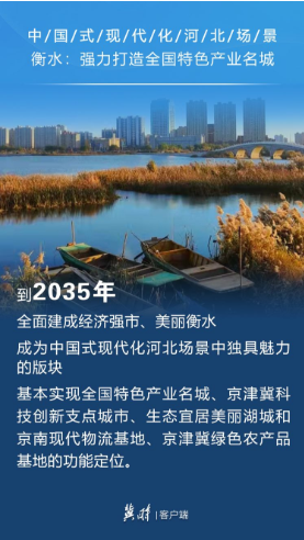 深入学习贯彻党的二十大精神,按照省委十届三次全会部署要求,衡水市全力推进全国特色产业名城建设,明确提出到2035年,全面建成经济强市、美丽衡水,奋力谱写中国式现代化河北场景衡水篇章。