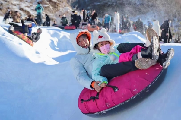 穷则思变。2011年,房庄村启动老君顶旅游景区建设,清河道、修村路,开发河谷、高山漂流等项目;随着近年来乡村旅游越来越火,又陆续修建复古滨水商业街、综合服务楼等配套设施;增建滑冰场、滑雪场等冬季游项目,“冰区面积10万平方米、雪区面积8万平方米和打造两万平方米的冰雪大世界。景区最高峰时游客接待量1.5万人。”房庄村党支部书记、村委会主任房文平如数家珍。为拓展村民增收渠道,村里还成立了村民经济合作社,旅游农副产品达30余种。如今,房庄村依靠青山绿水吃上了旅游饭。