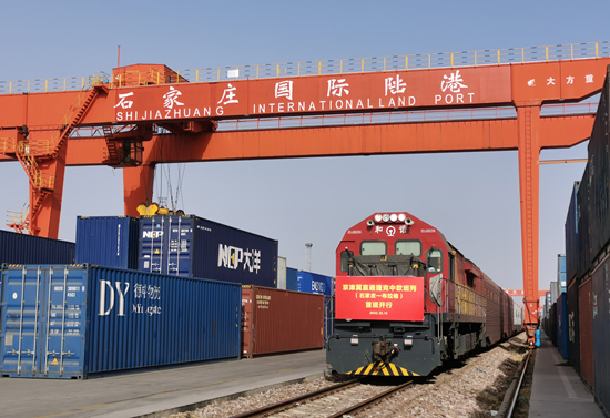 2022年12月12日,京津冀直通捷克中欧班列从石家庄国际陆港首发。梁子栋摄