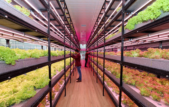 在石家庄市正定县塔元庄村同福智慧农场,工作人员正在查看水培蔬菜生长情况。 梁子栋摄