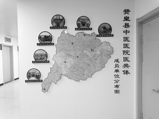 赞皇县中医院张贴着医共体成员单位分布图。