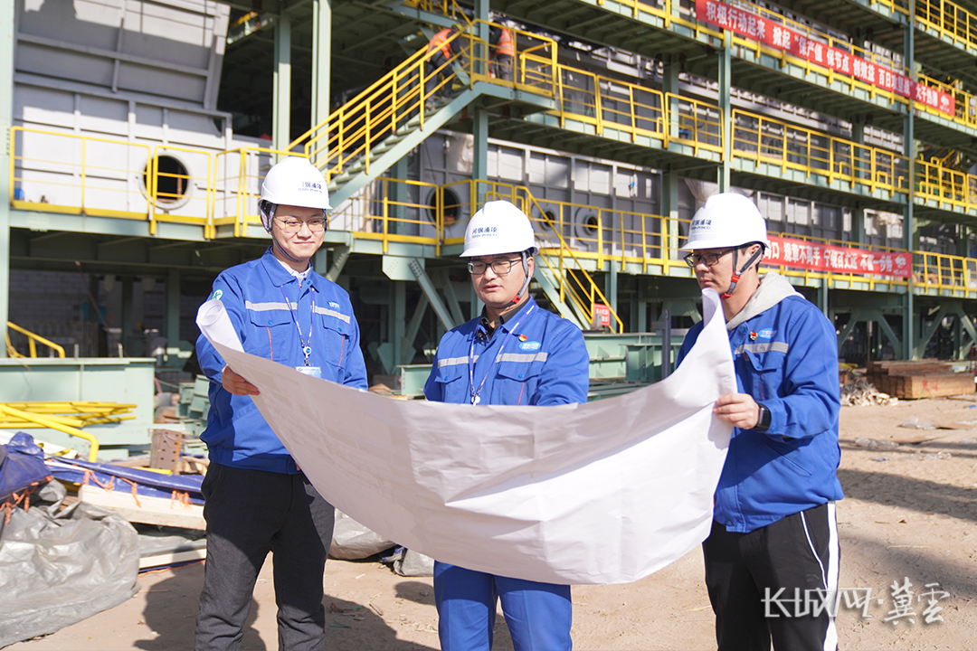 在河钢浦项汽车板项目建设现场,技术人员正在对照施工图纸交流实际问题。长城网·冀云客户端记者 冯立华 摄