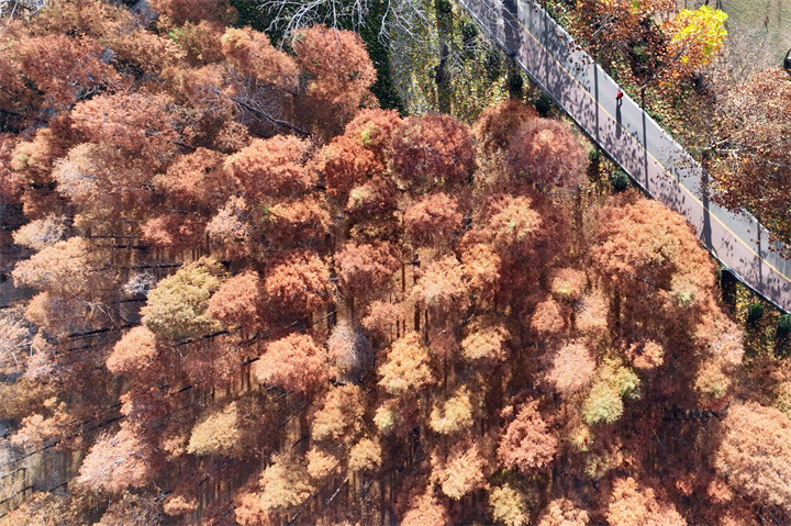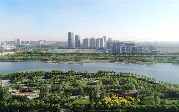 邢台市达活泉公园景色(无人机照片)。新华社记者骆学峰摄