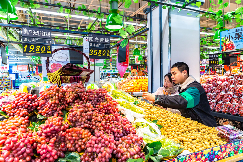 消费者在超市选购水果。 新华社发(陈熙摄)