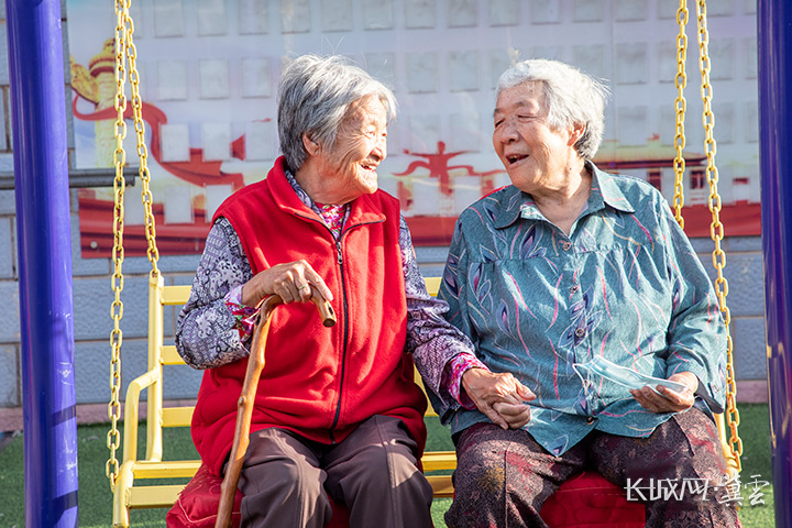 唐山市滦南县心贴心智慧养老服务中心的院子里,老人们在开心唠家常。长城网·冀云客户端记者 李皓 摄