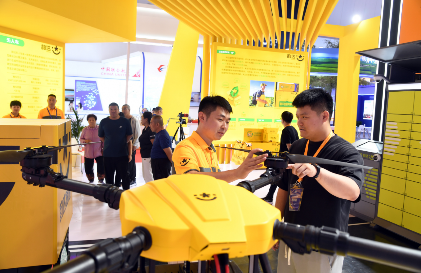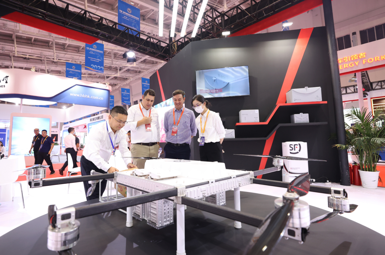 2023中国·廊坊国际经济贸易洽谈会期间,参展商向来宾介绍多旋翼大载量物流无人机。记者 贾珺 摄