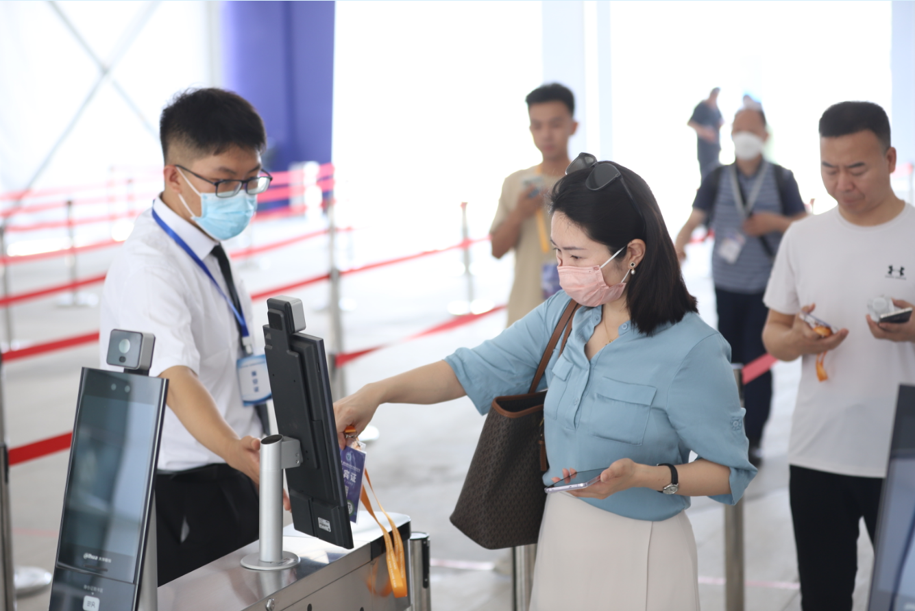 在临空国际会展中心,嘉宾有序通过安检通道。记者 董旭旭 摄