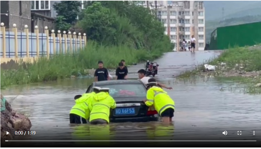 视频为7月31日下午,邯郸交巡警蹚水救援被困车辆。