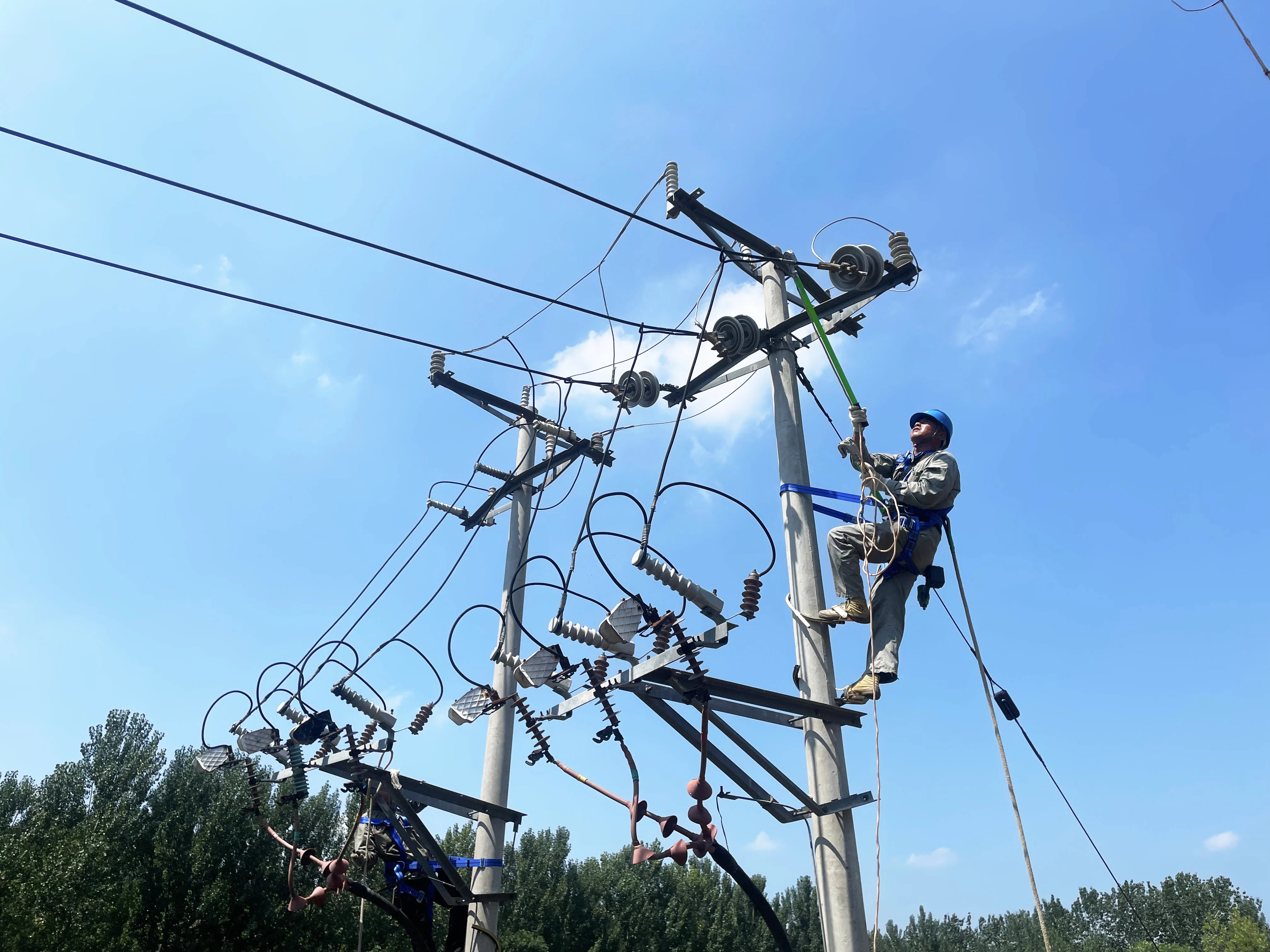 图为永清县供电公司工作人员在别古庄镇刘赵庄村修复电力设施。 通讯员 穆建军 记者 刘磊 摄