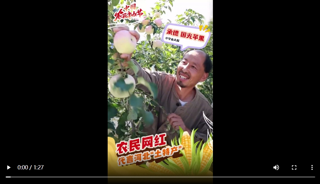 庆祝第六个“中国农民丰收节”,河北新闻网推出微视频《丰收啦!农民网红代言河北“土特产”》,邀请河北8位农民网红博主为家乡农产品代言。“丰”景正好,水灵灵的“土特产”来啦!