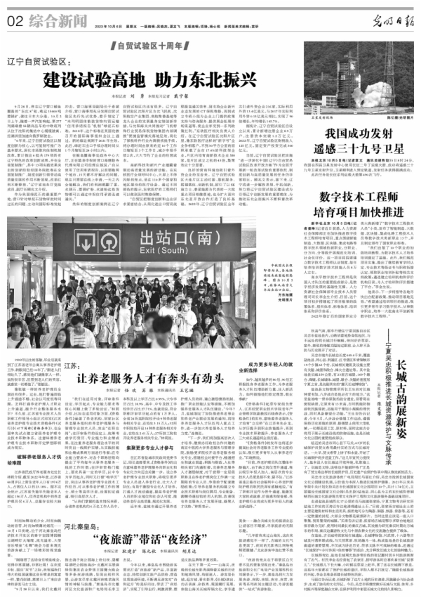 在天下第一关——山海关,夜晚的长城光影秀演绎着关城的历史和地域风情,绚丽迷人。游客登长城,逛古城,看光影秀、《长城》演出、仿古表演、杂技秀,观国潮灯笼展,体验山海关长城浑锅文化,享非遗美食……融合关城文化的旅游业态让游客目不暇接,尽享旅游的无限乐趣。
