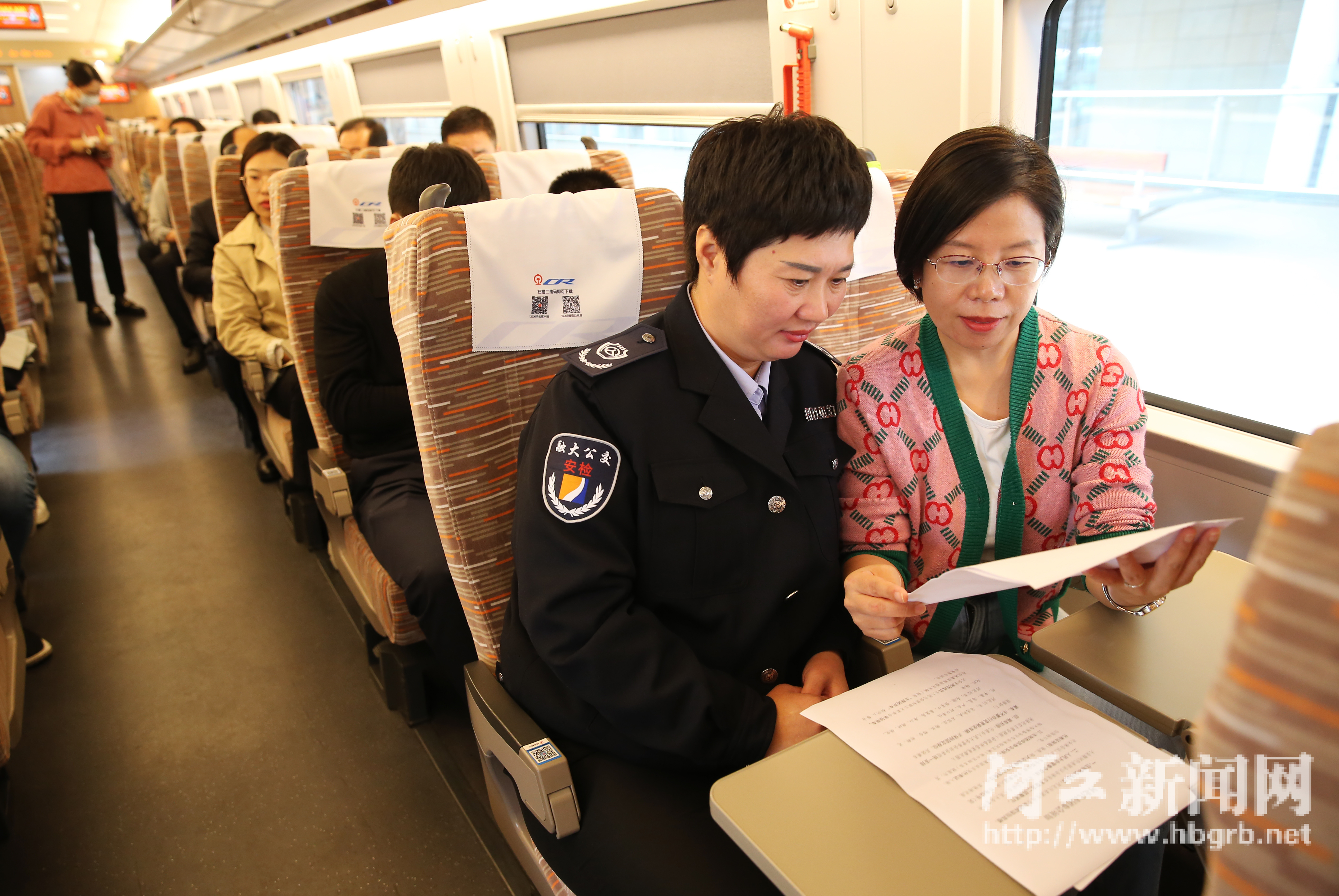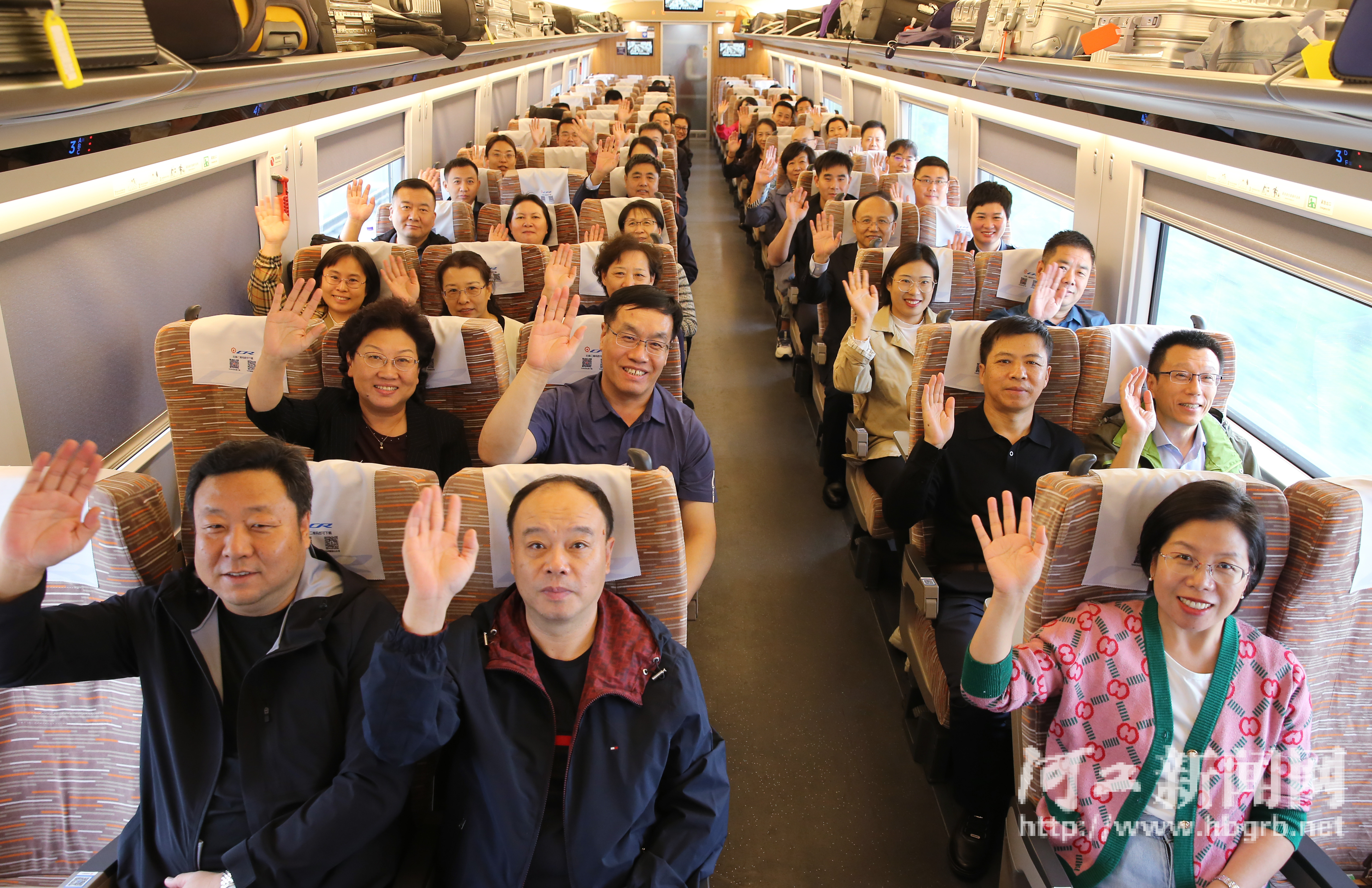 10月7日,在高铁上,河北省代表团精神饱满赴京参会。(特派记者郑荣玺摄)