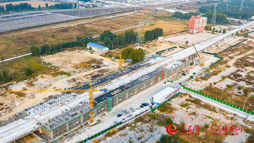 航拍雄州站建设现场。人民网记者 李兆民摄