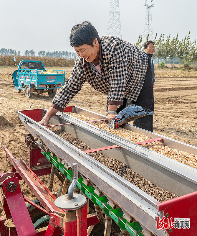 10月12日,文安县苑口村农民在播种冬小麦。