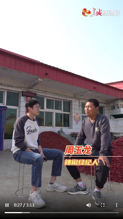 “‘辣椒经纪人’是这些年才有的,按以前的话说,就是‘辣椒小贩’。”帅村党支部书记周满良告诉记者,像周玉龙这样的辣椒经纪人有100多名。他们承接上游辣椒种植与下游辣椒终端销售,有的承担中间商的作用,把辣椒卖到国内外市场,有的建立了自己的种植基地,有的已经创建了加工企业……