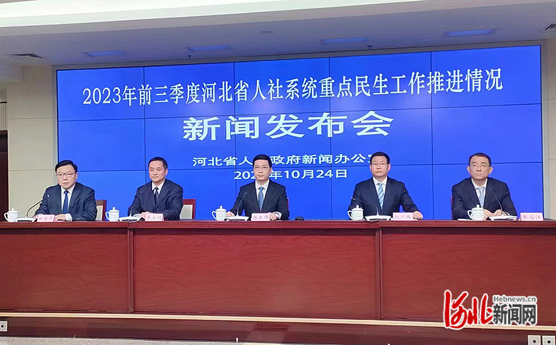 10月24日,河北省政府新闻办召开2023年前三季度河北省人社系统重点民生工作推进情况新闻发布会。图为发布会现场。