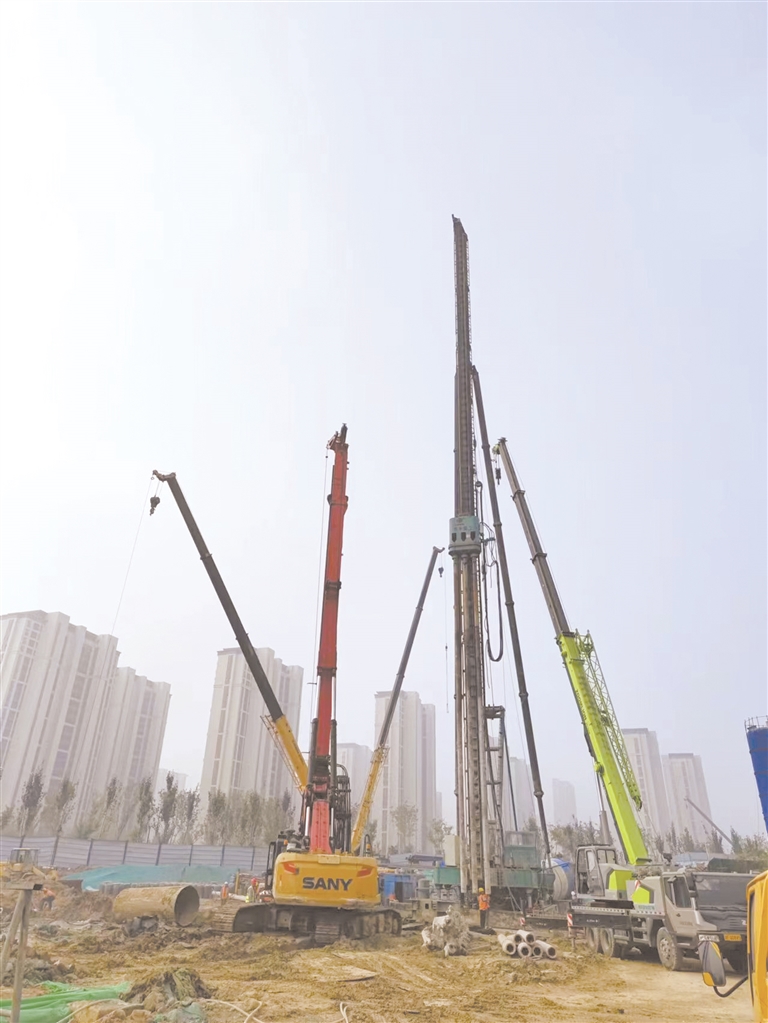 11月17日,灿阳高照,紧张繁忙的东三环黄花沟雨水泵站扩建工程施工现场,旋挖钻机、三轴深层搅拌桩机正在不停作业,抢抓工期。