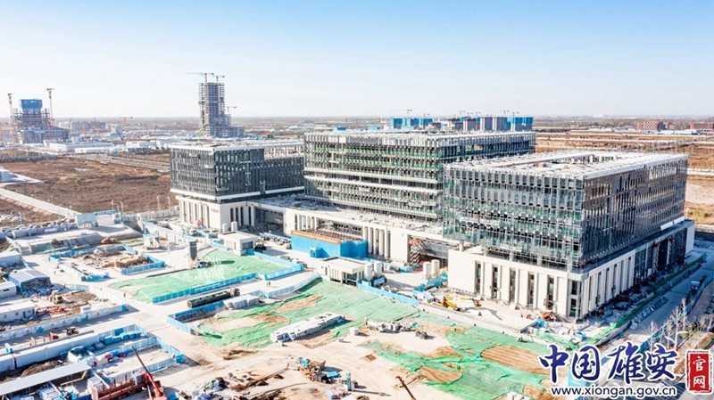 雄安宣武医院(一期)工程已移交雄安新区开诊试运行。二期工程(新区投资部分)目前3#医技楼、4#医技楼、3#住院楼、4#住院楼、门诊楼均已封顶;西区科研楼、实验楼、教学宿舍均已封顶,东区正在进行二次结构施工。中国雄安官网牛思佳 摄