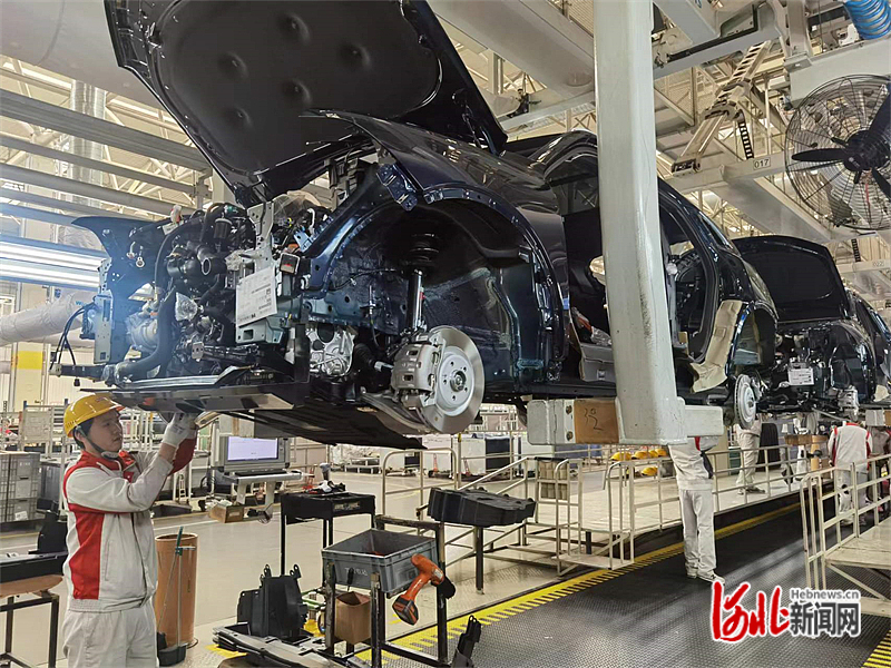 11月22日,长城汽车徐水分公司总装车间,一辆辆魏牌蓝山、新摩卡智能新能源汽车正在进行装配。
