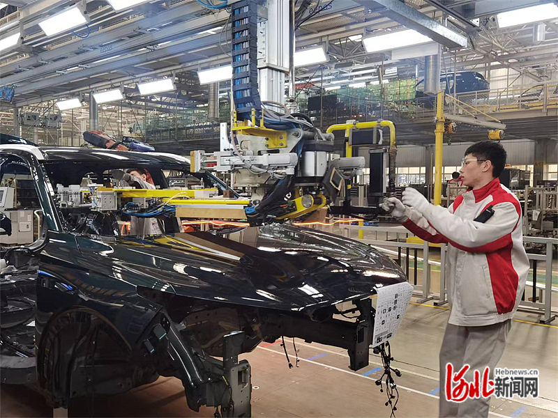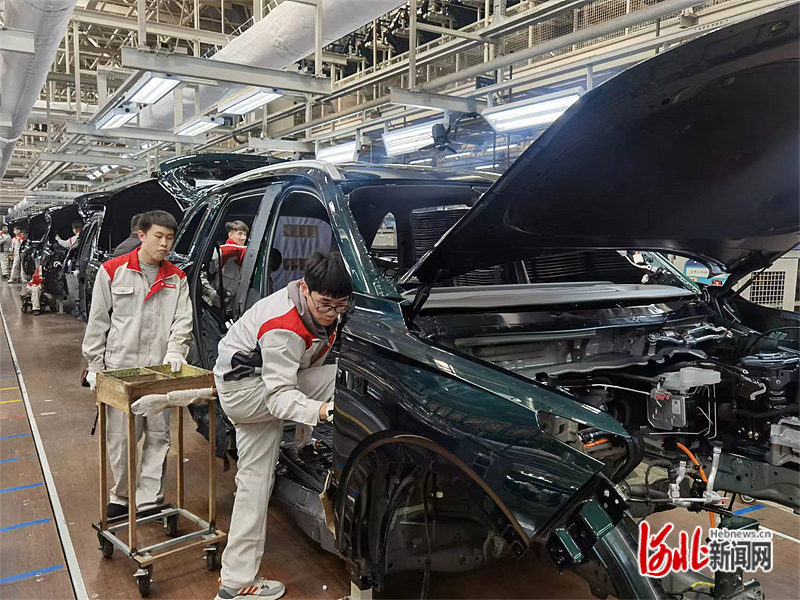 11月22日,长城汽车徐水分公司总装车间,工人正在装配魏牌蓝山智能新能源汽车。河北日报记者潘文静摄