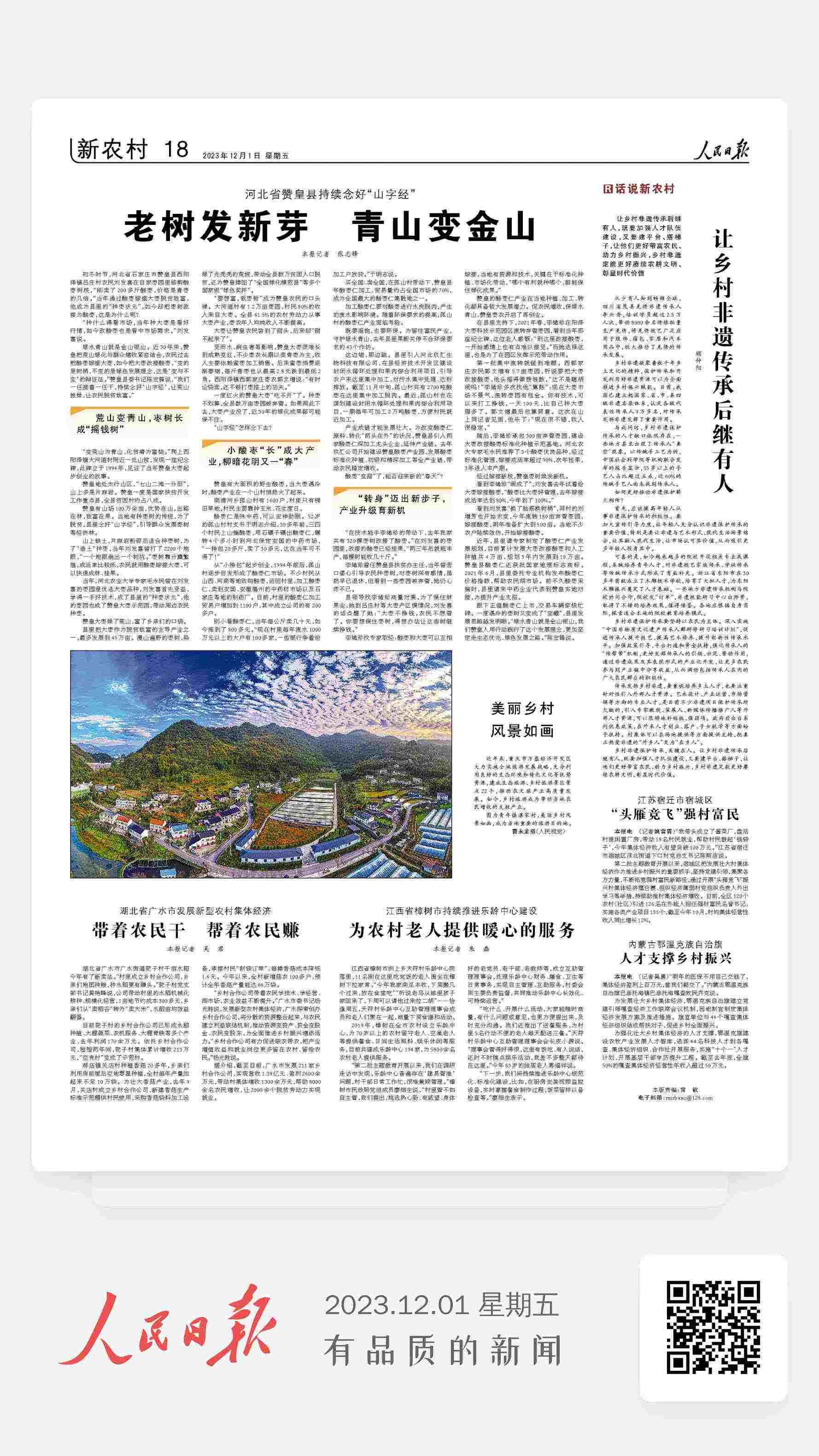 眼下正值酸枣仁上市,交易车辆穿梭忙碌。一度遇冷的枣树又变成了“宝藏”,县里发展思路越发明晰。“绿水青山就是金山银山,我们赞皇人用行动践行了这个发展理念,更加坚定走生态优先、绿色发展之路。”陈宏锋说。