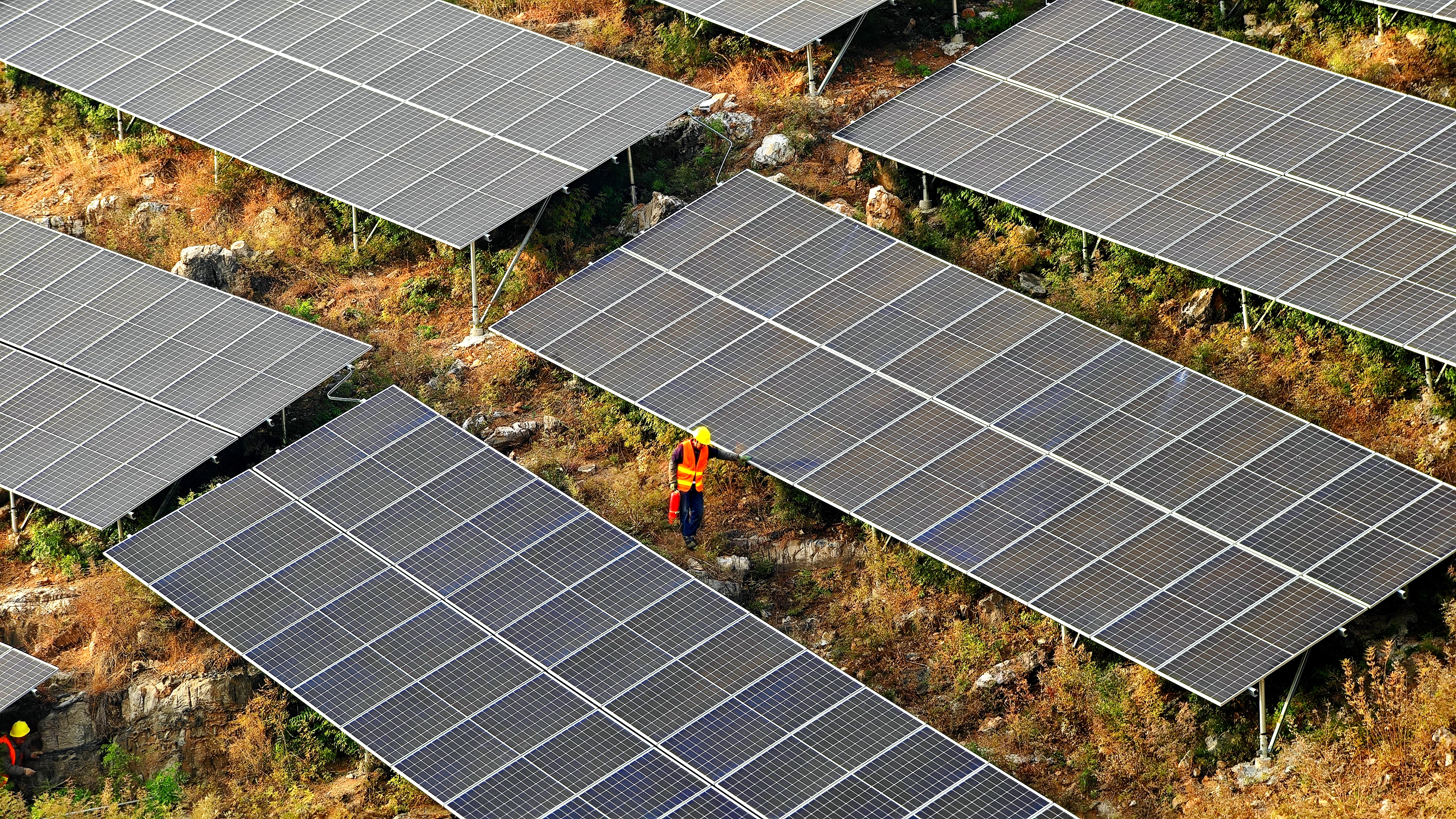 挖桩基、安支架、挂接地线……初冬时节,曲阳县灵山镇180MW光伏电站项目建设现场一派热火朝天,沉睡的荒山被一块块光伏板覆盖着,在阳光下熠熠生辉。
