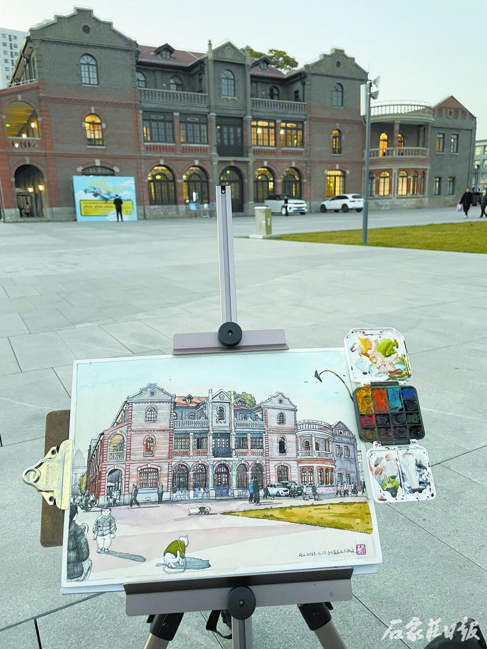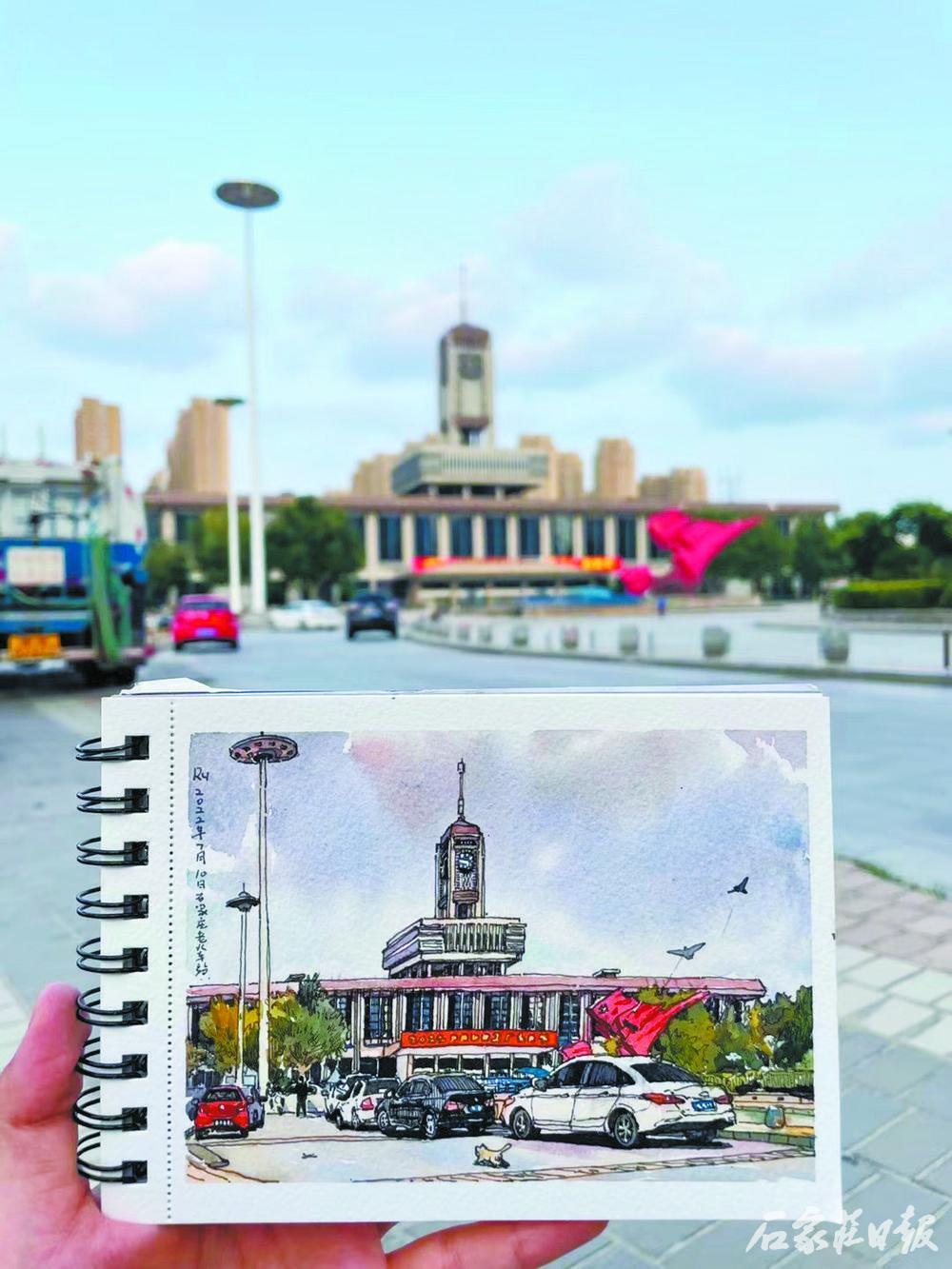 在石家庄画画,他会把画的作品发在他的小红书等自媒体号上。慢慢地,越来越多的画友跟他一起画画写生。“速写石家庄”,就在一群喜爱画画的石家庄市民的响应下成立了。