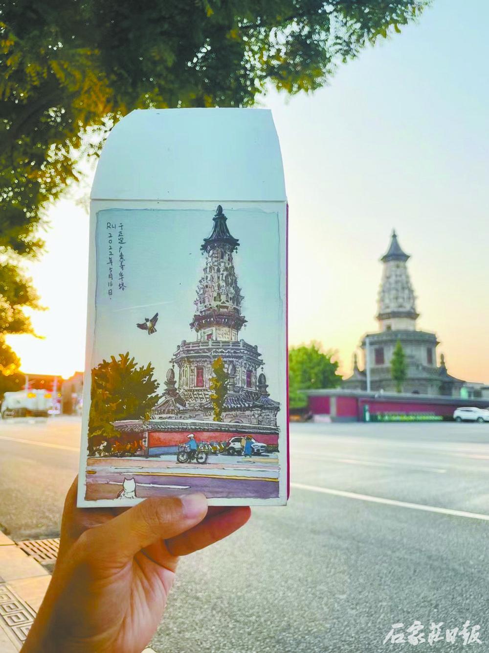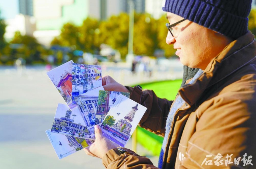 五年时间,他从一开始通过外来人的视角记录、探寻、认识石家庄的美,慢慢转变成用本地人的视角关心石家庄的城市发展、发现石家庄的美。渐渐地,他在画画时,就带有了一种对这座城市的责任感。“这盒明信片,我好像在为石家庄代言,我想把石家庄所有的美好推荐给全国网友,让他们认识了解石家庄,看看这座美好又温暖的城市。”茹义松说。