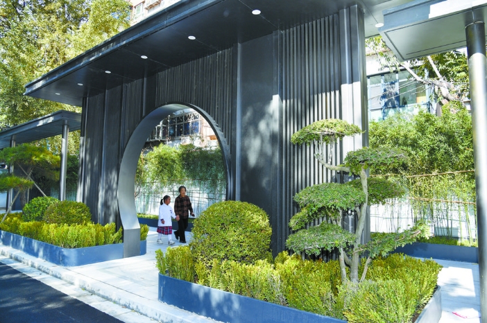 在石家庄市裕华区新打造的精品街道——小马北路,设计新颖的竹韵廊景观吸引了市民的目光。 记者 张 震 摄