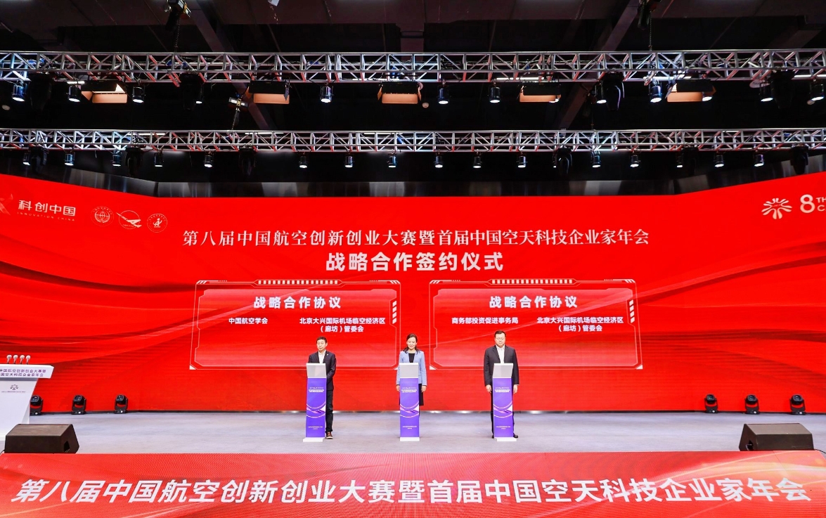 开幕式上,临空经济区(廊坊)管委会与商务部投资促进事务局、中国航空学会签署战略合作协议。开幕式后,中国航空学会党委书记、理事长林左鸣,中国工程院院士孙聪作主题演讲。