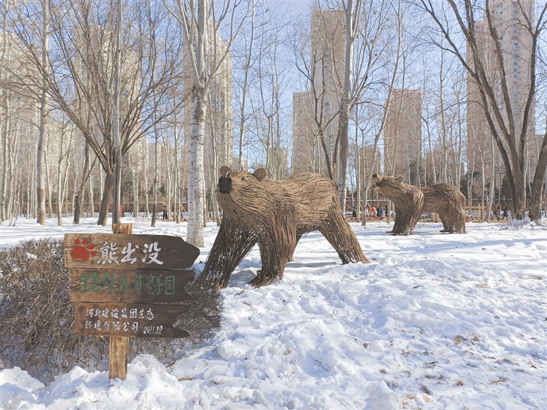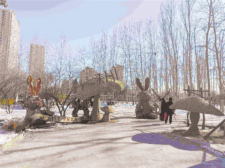 从12月中旬开始,各单位参赛选手们克服了天气严寒、缺少电源等困难,高质量地完成了园林废弃物活化利用创新大赛,呈现出最佳的艺术效果。除上述作品外,植物园利用修剪下来的枝条、废旧木材、树叶及草绳等制作出可爱的兔子和蘑菇形象;滨河公园采用正八边形图案,运用树干、树枝、藤条等原材料制作《别境洞天》迷宫;东风公园利用园林废弃物制作可供孩童休息的座椅,利用园区产生的绿化废弃物,加工成碎片、锯末,对场地进行铺设;园林基建服务中心的《啭啭之沙》,利用园林废弃物杨树、槐树等树干制作背景墙;道路绿化服务中心采用园林木质废弃物为主要原料,制作大型积木、小舞台看台、游戏景墙、小品等;河北新万景建设集团有限公司以树枝、木条为框架,用树皮、树叶及麻绳等园林废弃物,制作不同样式、纹理、尺寸的蝴蝶和虫茧;河北建设集团生态环境有限公司用藤条制作的《熊出没》,形象逼真,形态各异,宠萌可爱,引人入胜。此外,《状元笔》《诗言志 歌永言》《东湖印象》《翱翔的守护者》《低碳生活,绿建未来》《探趣之径》等作品也充分利用废弃物再利用理念,为单调的冬景增加了多彩炫动的元素。