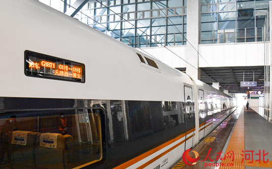 G8871次列车抵达雄安站。 人民网记者 宋烨文摄