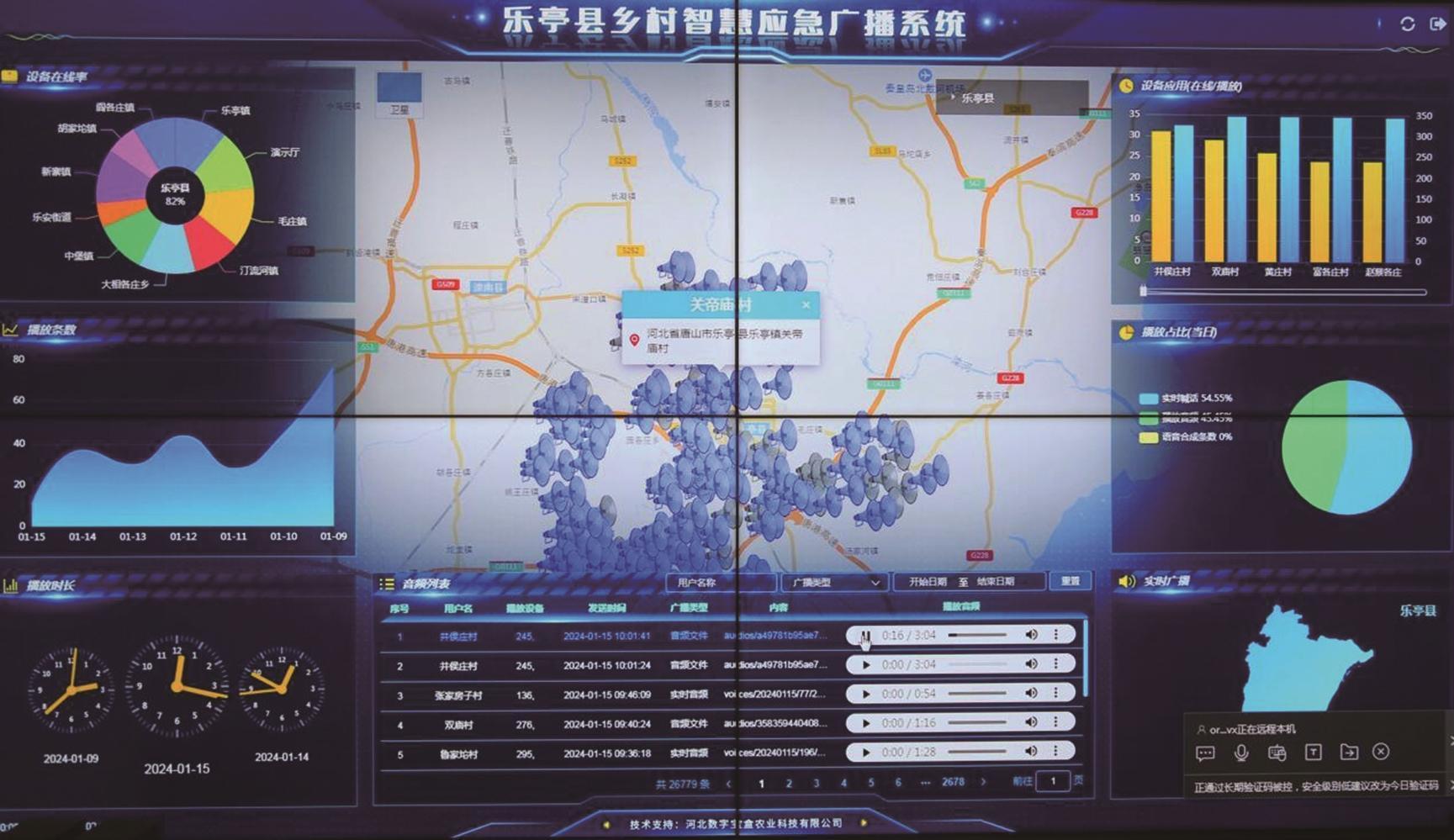 乐亭县乡村智慧应急广播系统大屏。记者 刘大民 摄
