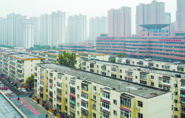 长安区河北二建生活区在老旧小区改造时进行了楼体粉刷美化、楼顶防雨处理,生活环境有了明显提升。