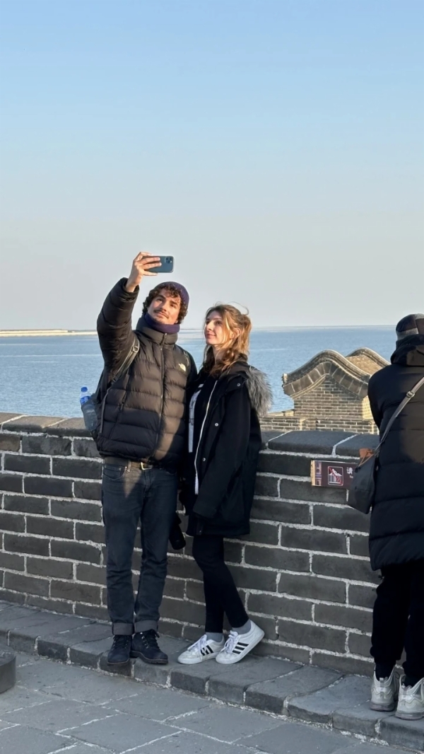 碧海蓝天下的老龙头是外国友人喜欢的打卡地。(图片由周红提供)