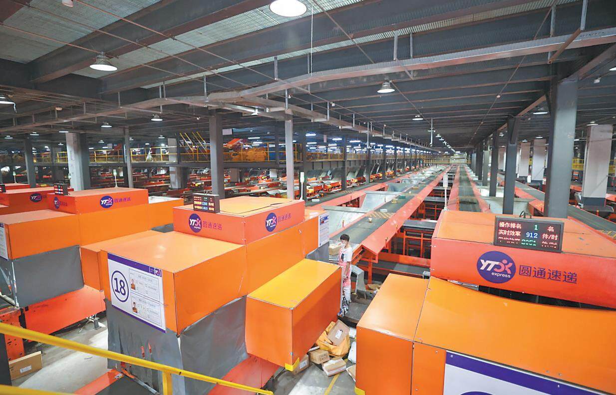 永清圆通速递北方总部基地华北转运中心自动化分拣库。记者 贾珺 摄